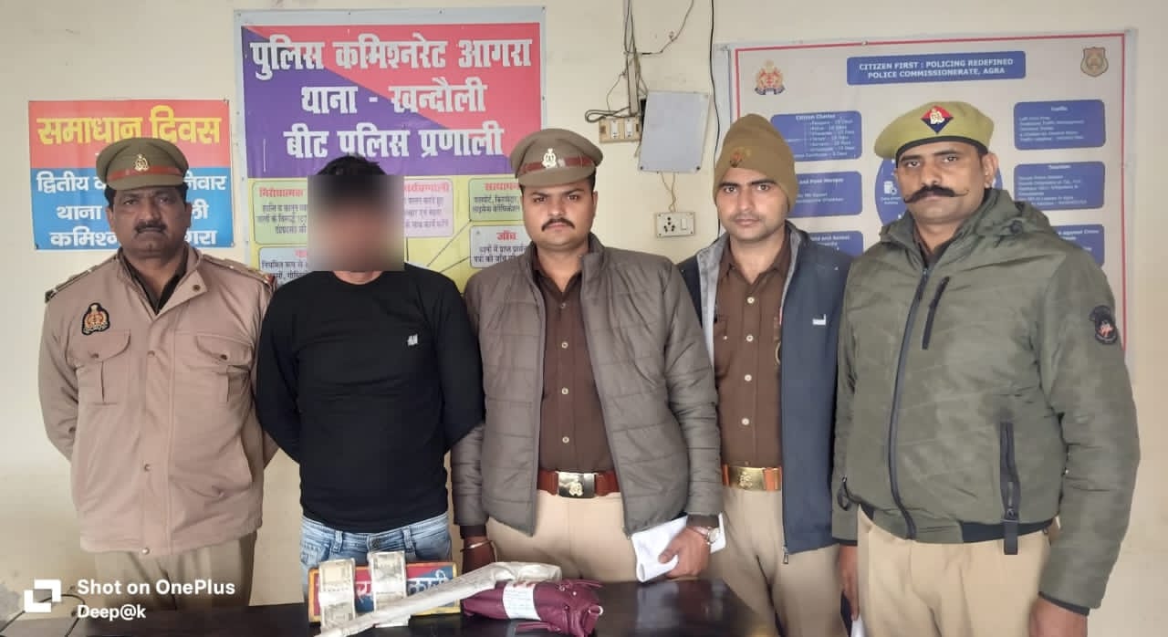 दिनांक 29 दिसंबर 2025 को थाना खंदौली पुलिस टीम ने चेकिंग के दौरान मुखबिर की सूचना पर सोनू को अतुल होम्स के पास से गिरफ्तार किया। तलाशी के दौरान उसके पास से अवैध तमंचा, जिंदा कारतूस, नकदी व एक पर्स बरामद किया गया। आरोपी को न्यायालय में पेश कर जेल भेज दिया गया है।