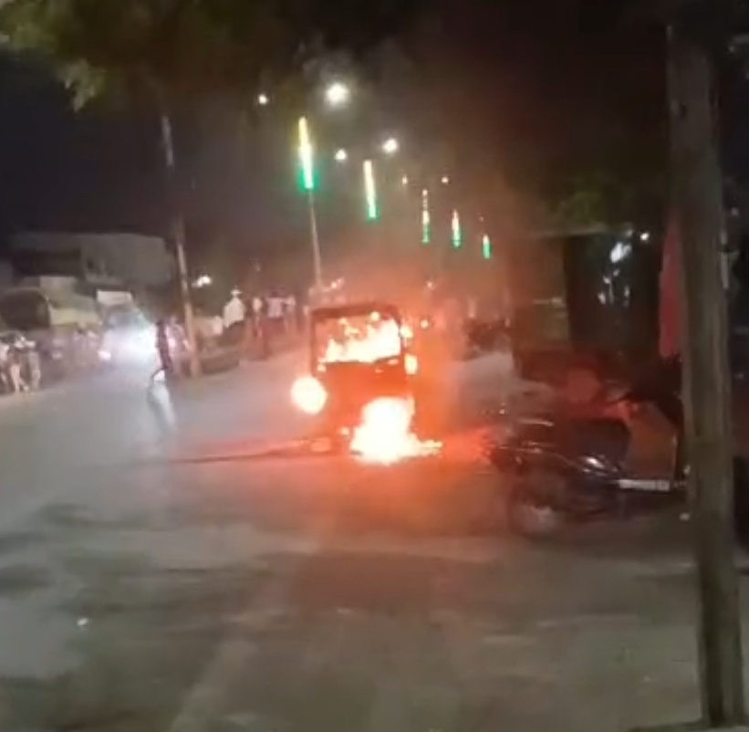 सवारियों से भरे ऑटो में लगी भीषण आग, सिलेंडर की सूचना से मचा हड़कंप ।